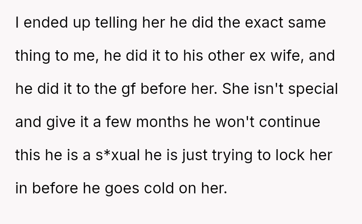 Given that the OP was seeking to prevent the new partner from experiencing the same prolonged marital distress, was her disclosure about the ex-husband's recurring pattern of s*xual withdrawal a necessary act of warning, or was it an unnecessary escalation that crossed personal boundaries regarding his current relationship?
