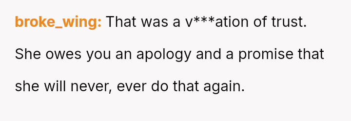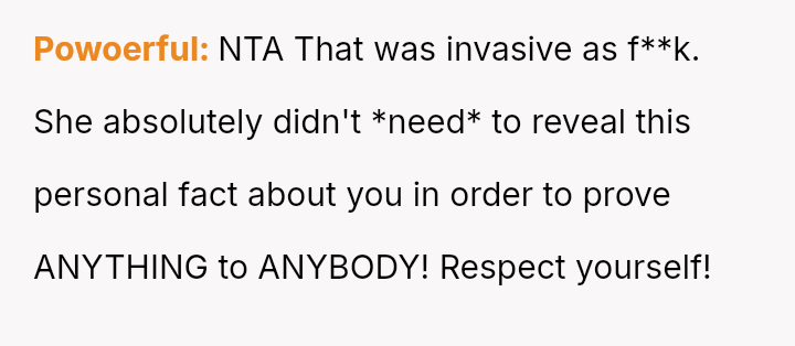 This action v***ated the OP's expectation of privacy regarding a sensitive personal detail, leading to feelings of anger and a subsequent withdrawal from the friendship.