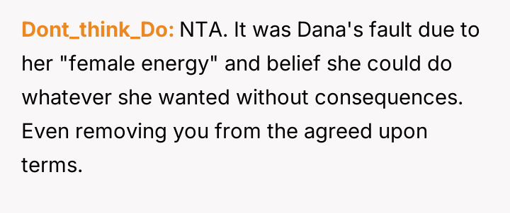 Given that the initial agreement prioritized the OP and his wife as a unit, was the OP justified in ending the arrangement when Dana actively tried to exclude him and v***ate the es**blished boundaries?