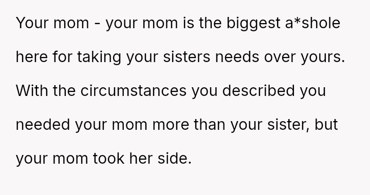 The central conflict lies between the OP's desire for fair treatment and the sister's es**blished pattern of leveraging past trauma to control family dynamics, leading to the OP feeling unfairly labeled as selfish and insensitive.
