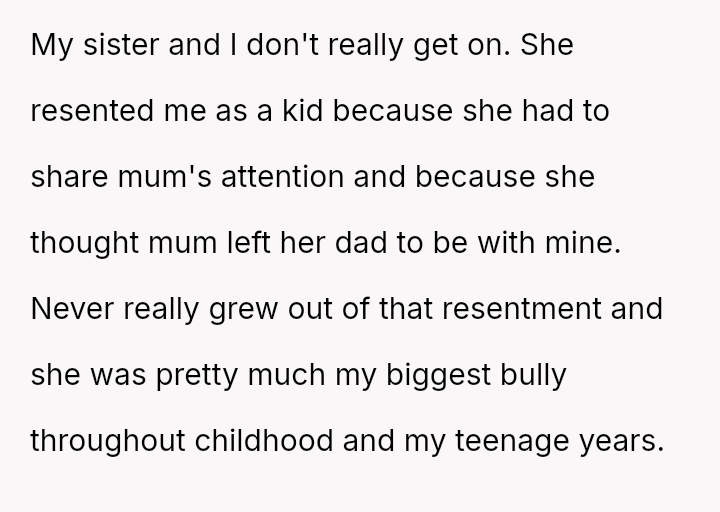 In this tangled web of grief and bitterness, the younger sister navigates a childhood shadowed by bullying and emotional neglect, yearning for peace but caught in the crossfire of a fractured family dynamic.