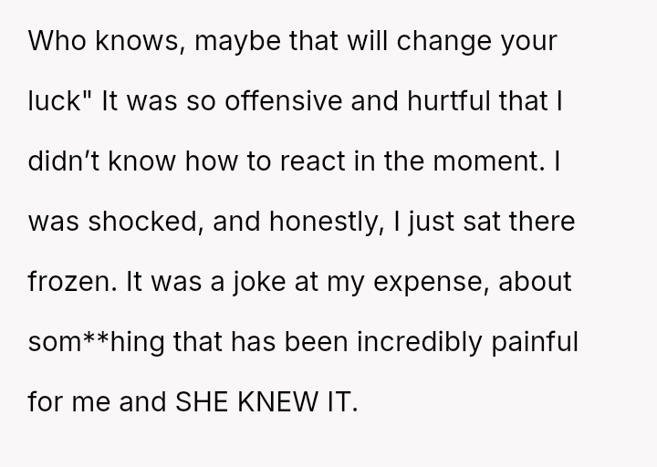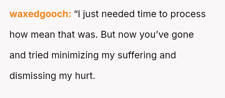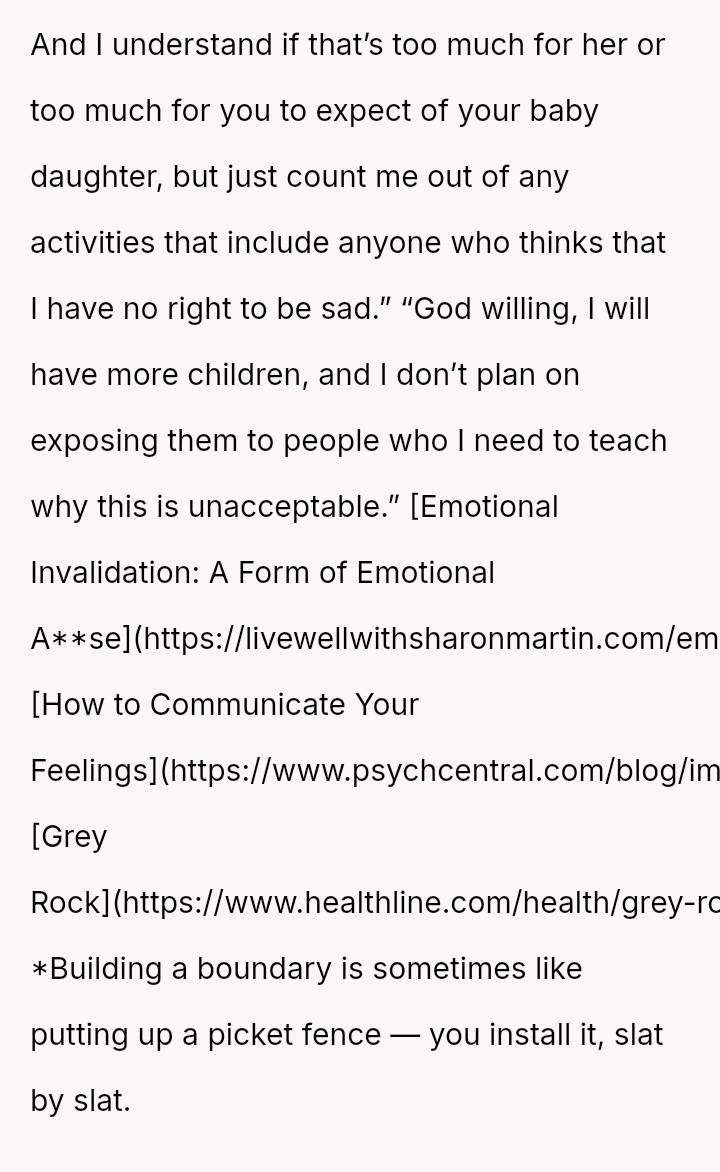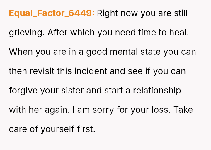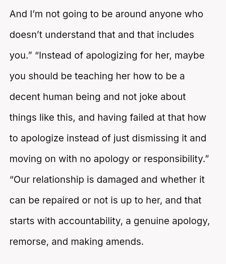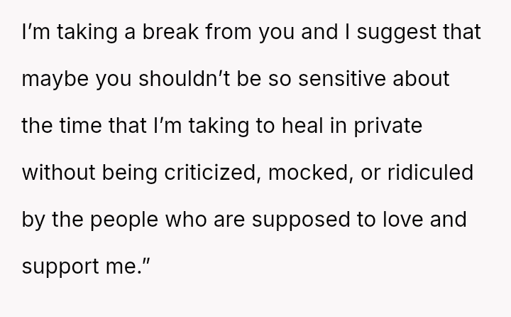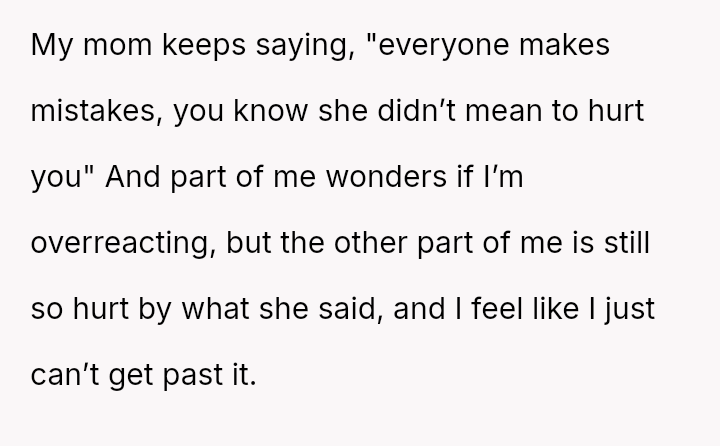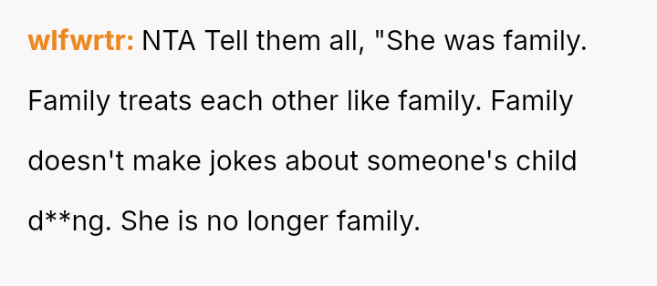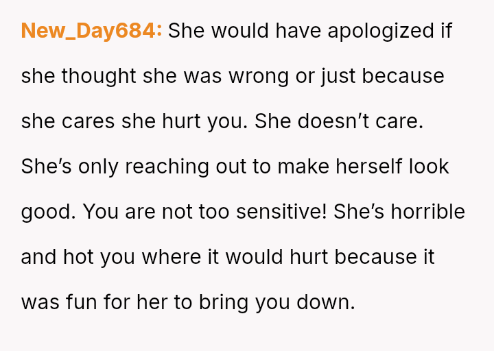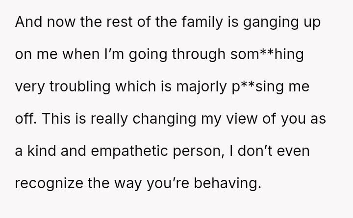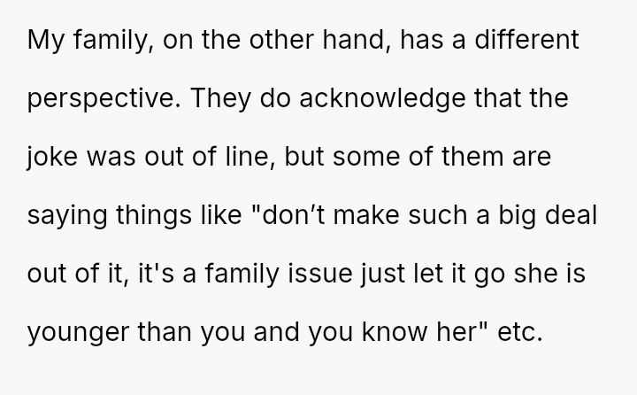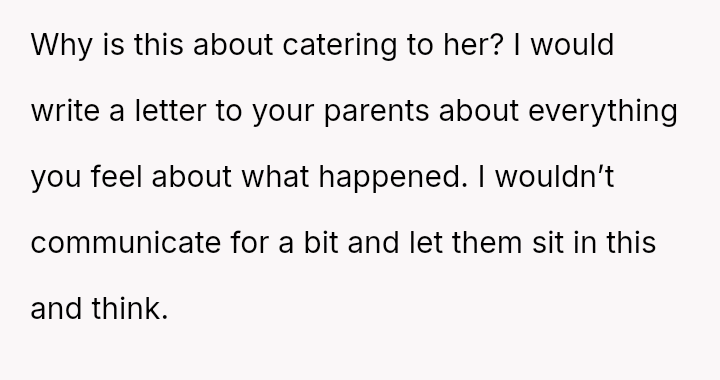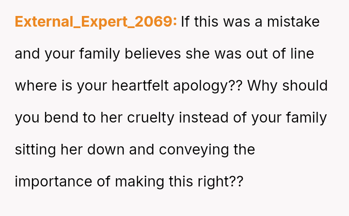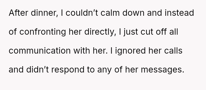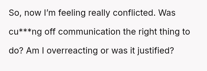 Her immediate reaction was to withdraw communication entirely, a move strongly supported by her husband but heavily questioned by the rest of her family, who prioritize reconciliation over validating her hurt.