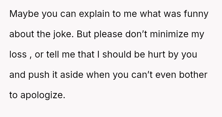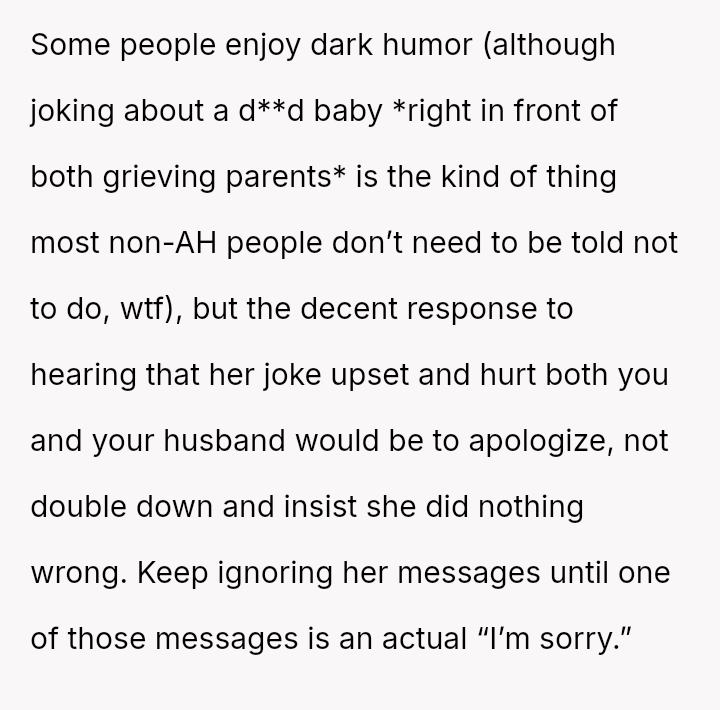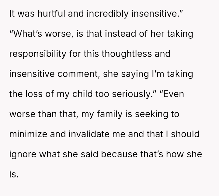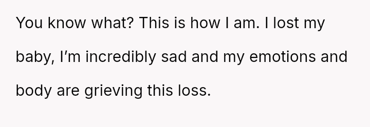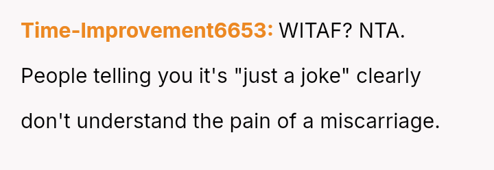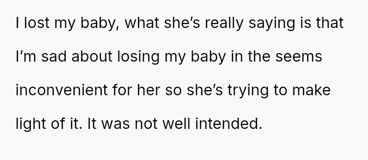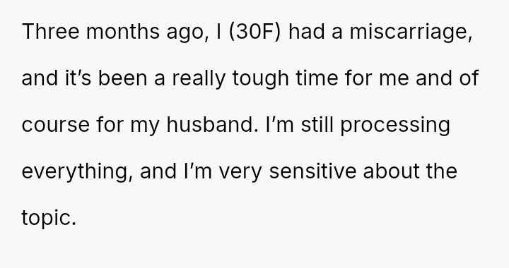 The original poster (OP) is dealing with deep emotional pain following a recent miscarriage, and this trauma was severely aggravated by her sister's insensitive joke.