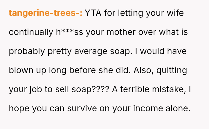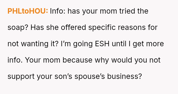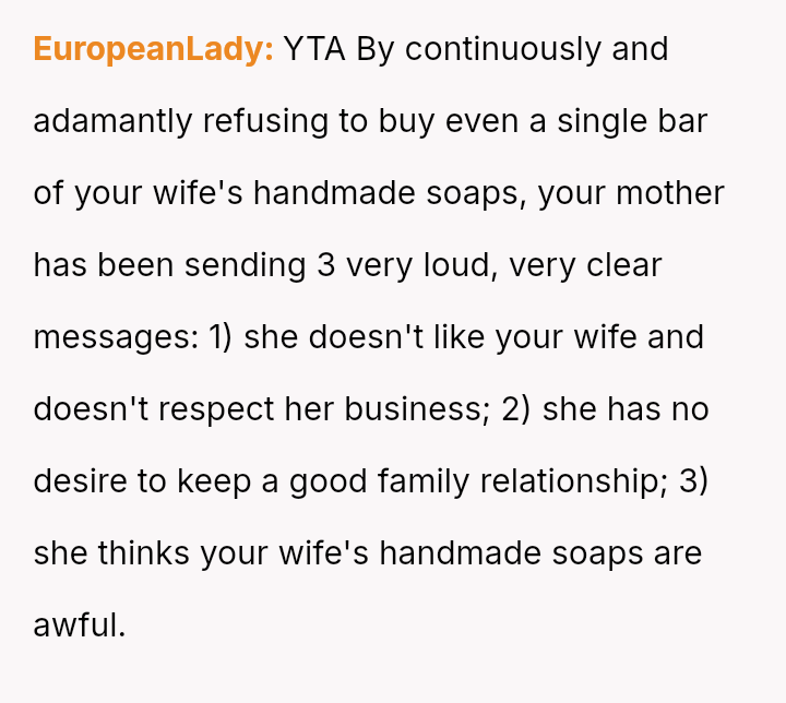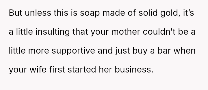 The original poster (OP) is stuck between defending his wife's entrepreneurial efforts and validating his mother's need for her stated boundary to be respected.