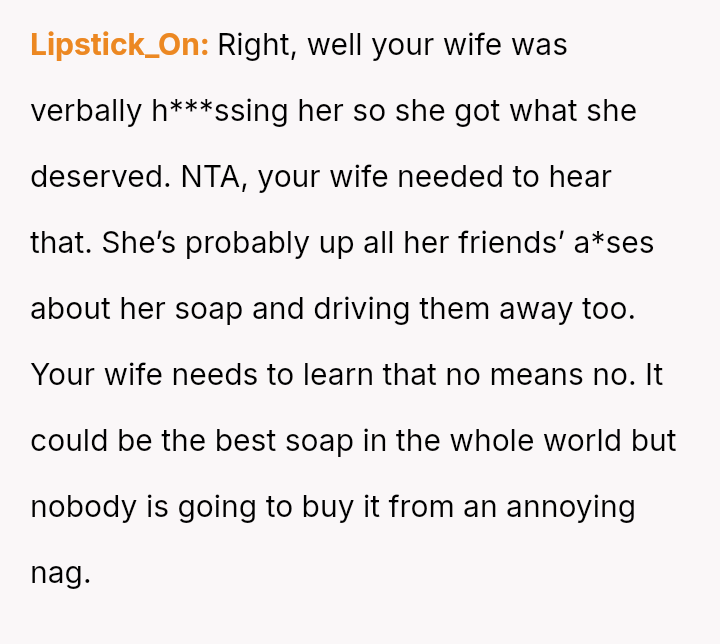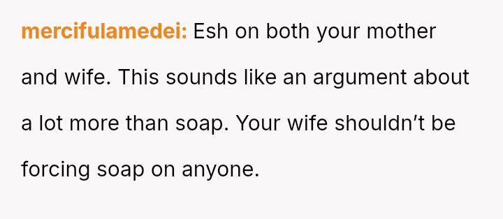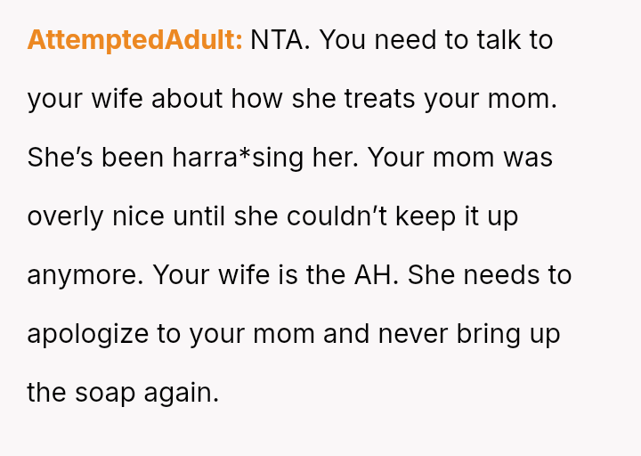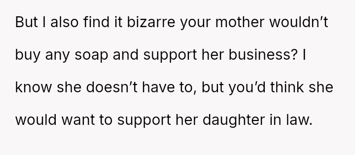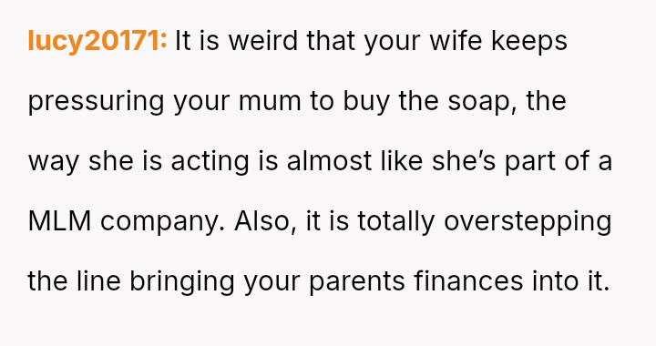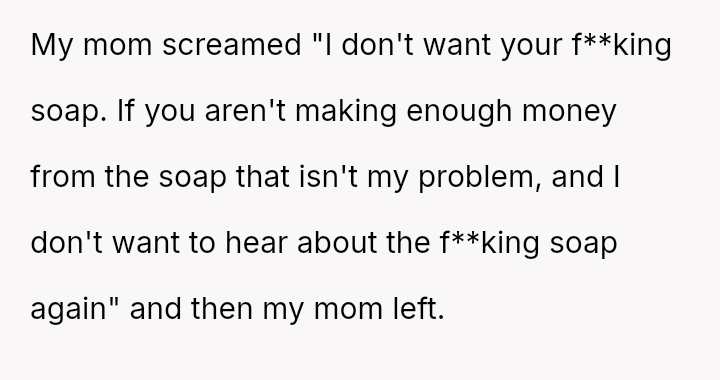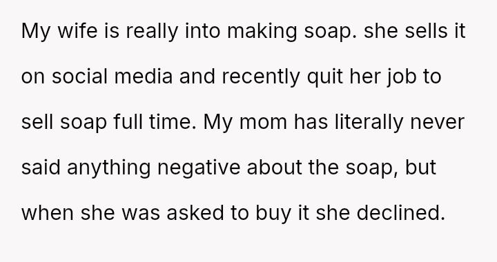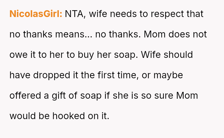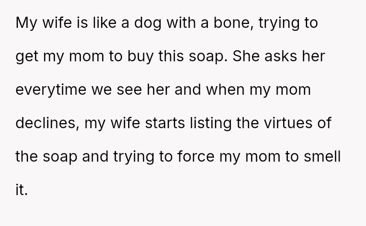 The central issue revolves around the wife's aggressive sales tactics for her soap business, which directly conflicted with the mother's clear refusal to purchase the product.