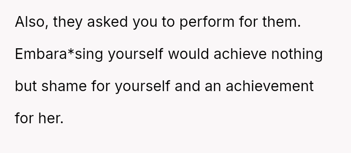 Should professional integrity be compromised to maintain fragile family harmony, or is self-respect non-negotiable even in minor social settings?