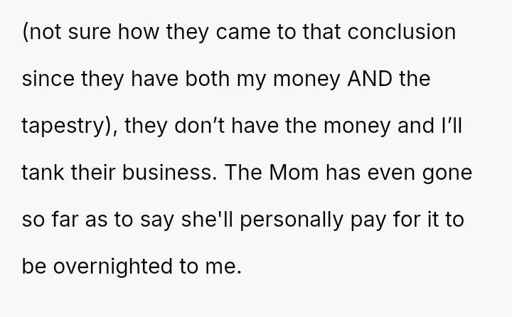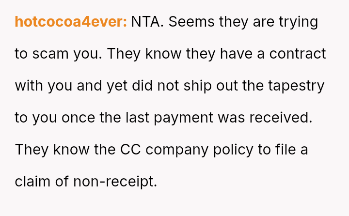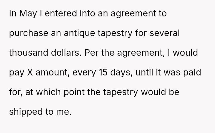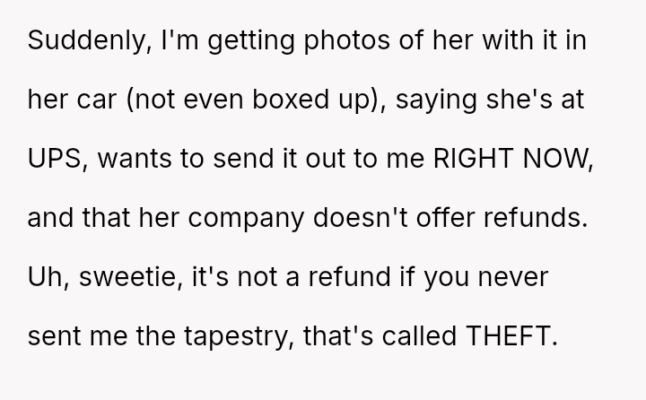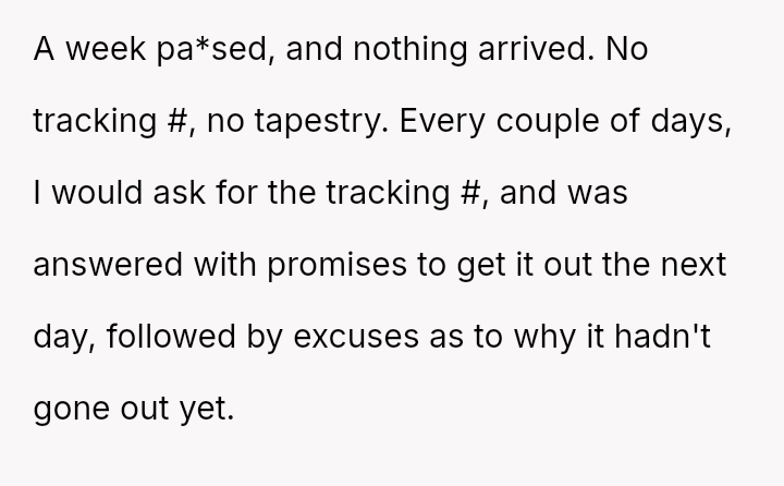 The tapestry, once so close, remained out of reach—lost in excuses and empty rea*surances—leaving the buyer grappling with betrayal and the sting of trust broken.