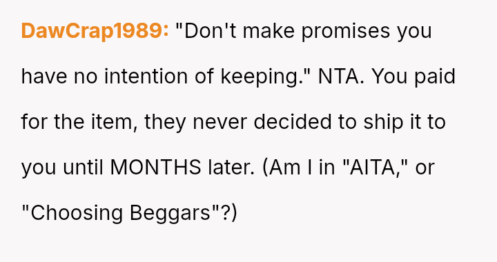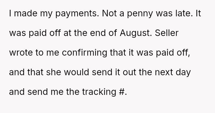 The original poster (OP) entered a clear written agreement for a purchase and fulfilled all payment obligations promptly.