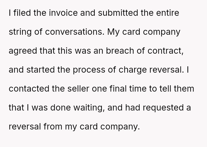 Given the extensive breach of contract and the seller's subsequent refusal to honor the initial agreement or refund request until faced with a chargeback, was the OP justified in firmly insisting on a full refund rather than accepting the last-minute shipping offer?