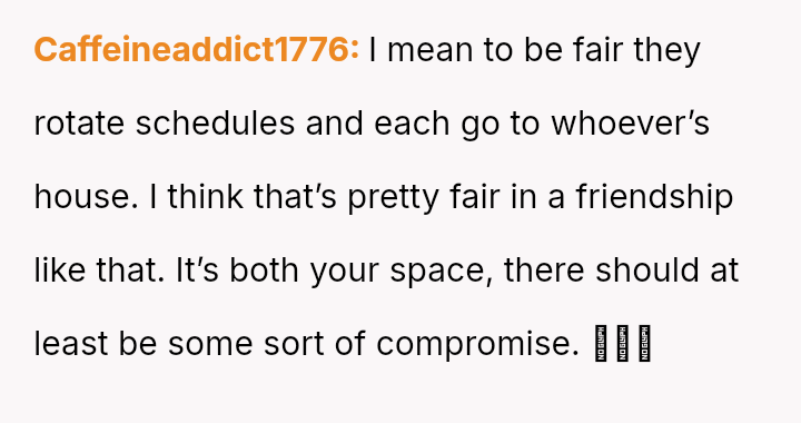 In the quiet battleground of shared spaces, a woman's simple desire for peace after a long day clashes with the unspoken rules of friendship and fairness.