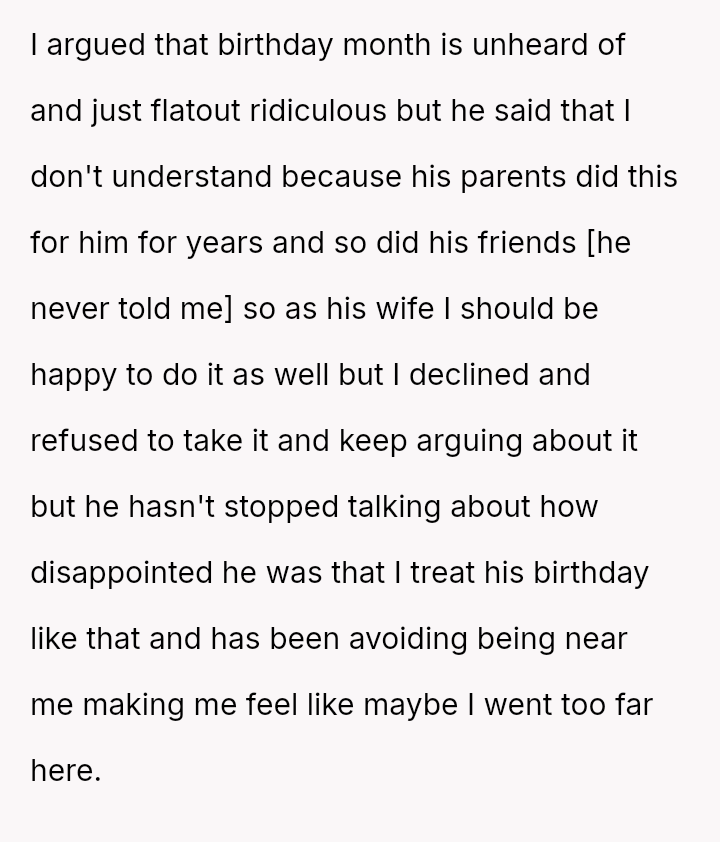 ![AITA for calling my husband ridiculous and refusing to take the list of expectations he gave me for his ["birthday month"]?](https://pb.ankitchaurasia.com/api/files/reddit_posts/43b075ld2kwtt3j/featured_img_hc8nv5477t.png)