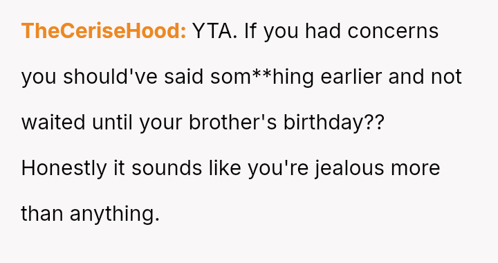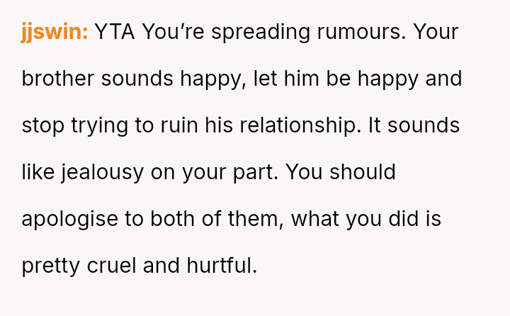 Did the OP overstep personal boundaries by voicing serious, potentially relationship-damaging concerns about her brother's partner, or was her intervention a necessary act of sibling loyalty intended to prevent potential emotional harm?