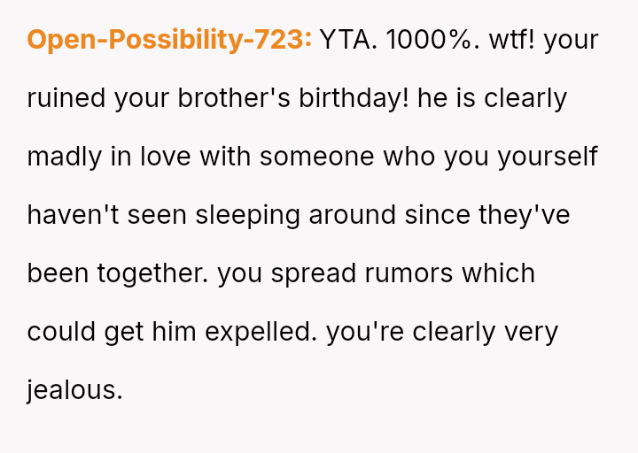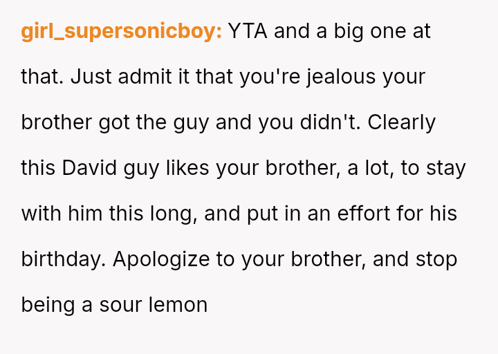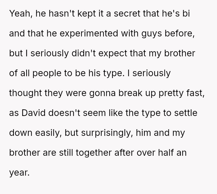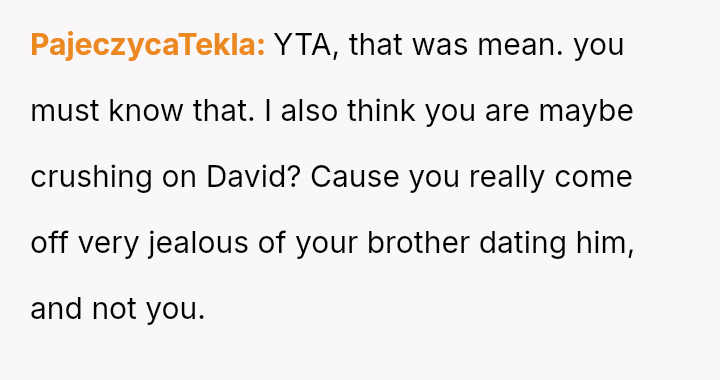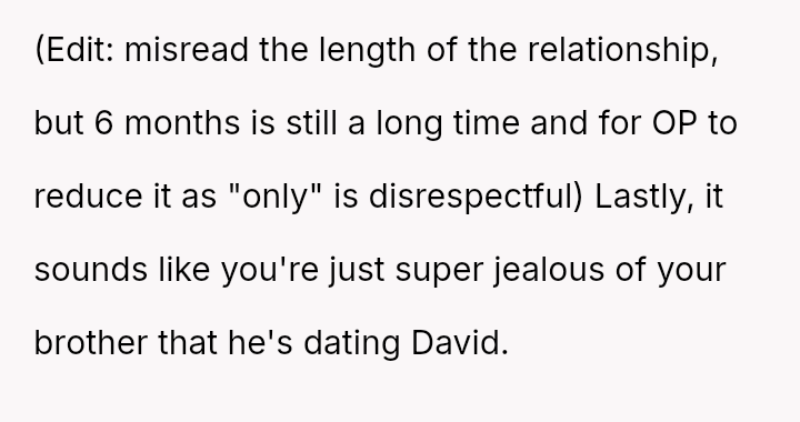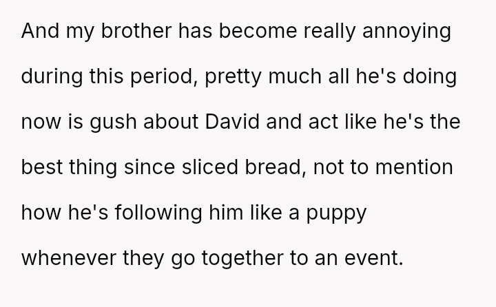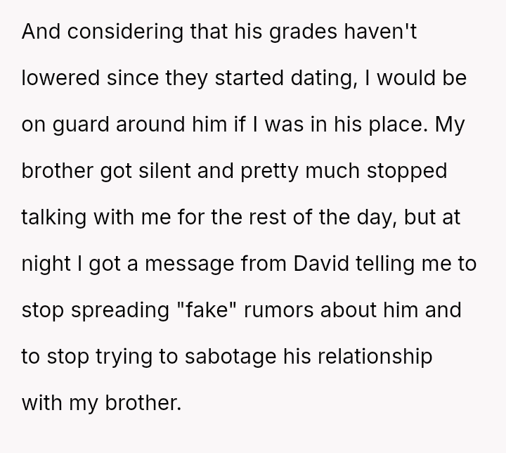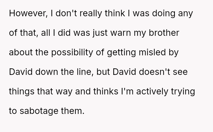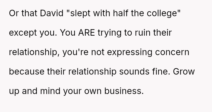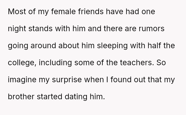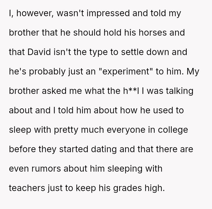 The original poster (OP) feels a strong need to protect her brother from what she perceives as a damaging relationship with David, whose reputation is widely known for being promiscuous.