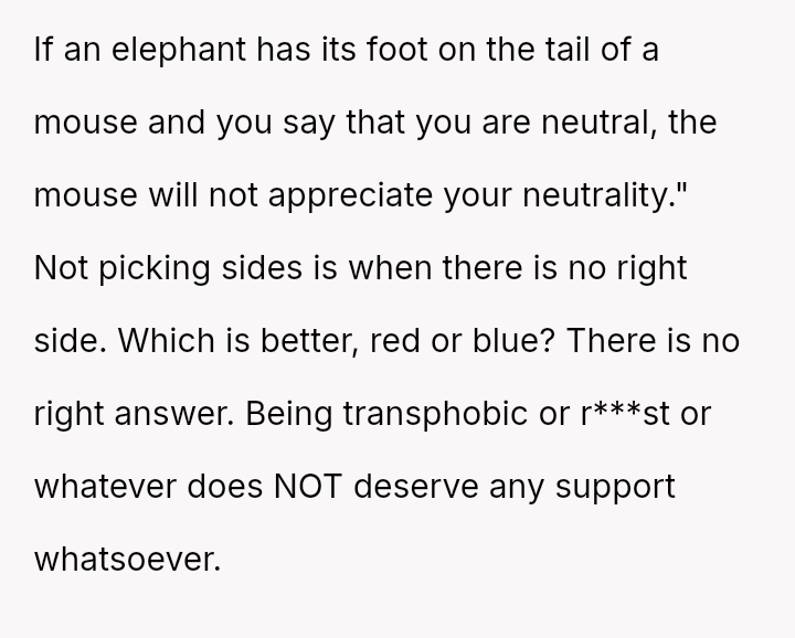 This presents a core debate on parental intervention versus impartial conflict management in complex family disputes involving ident*ty and disrespect.