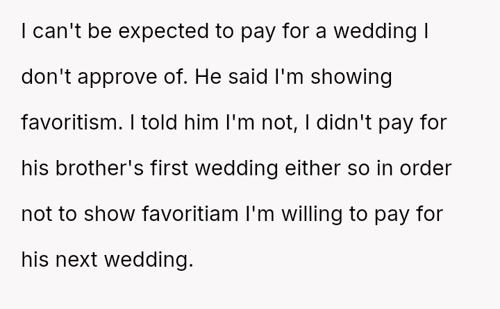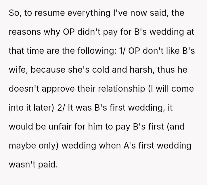 The original poster (OP) feels justified in offering significant financial support for one son's wedding because they approve of his fiancée and value the positive relationship she has with the granddaughter.