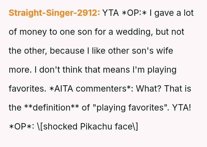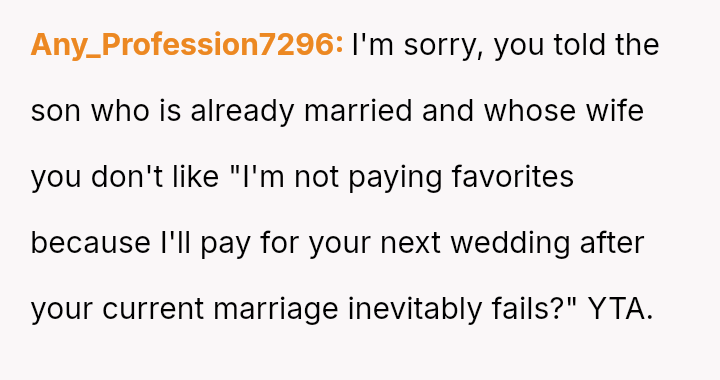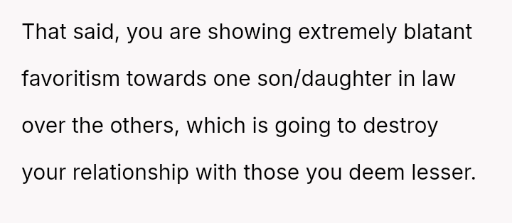 Does the OP's decision to base financial gifts on personal approval of a spouse outweigh the fundamental expectation of equal treatment between adult children, especially when such favoritism causes deep family division?