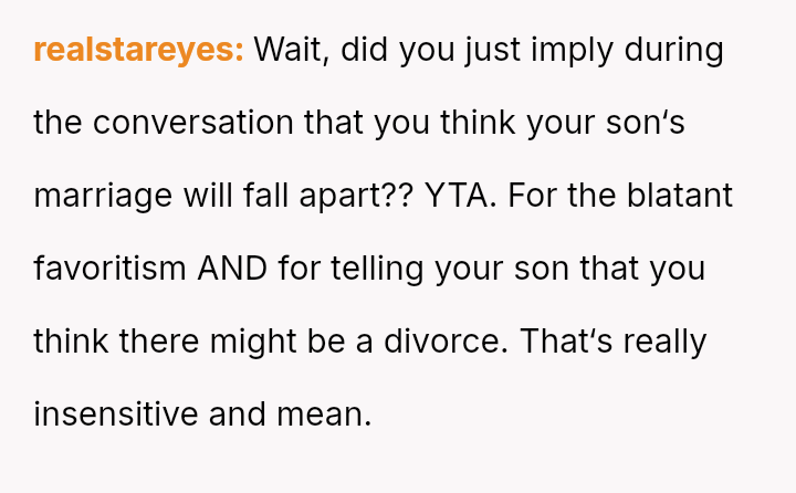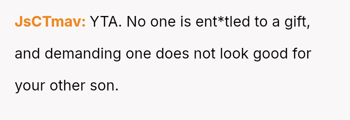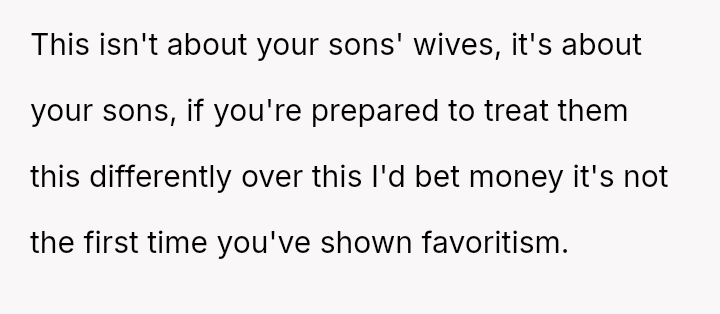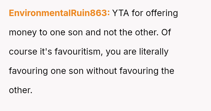 This action created a direct conflict with the other son, who interpreted the offer as clear favoritism, leading to a severe emotional outburst and confrontation.