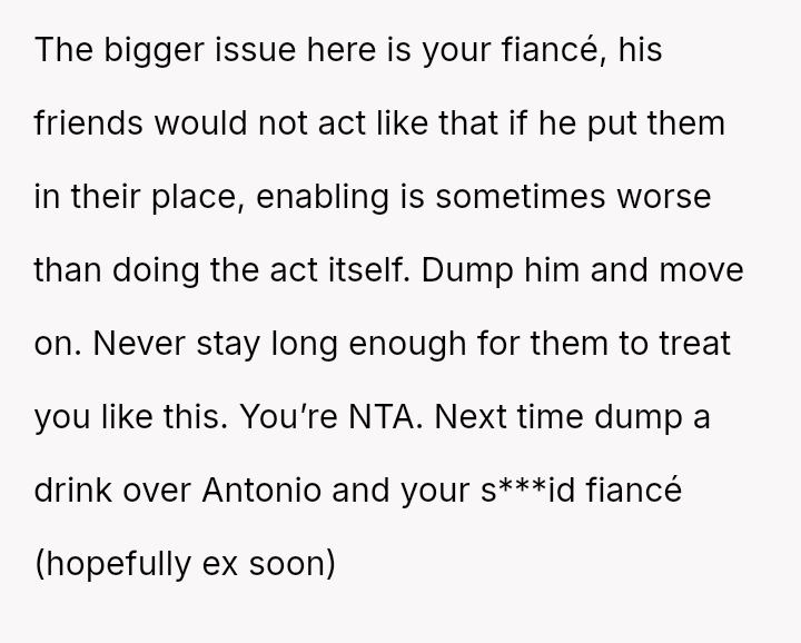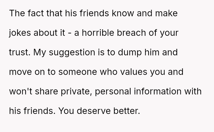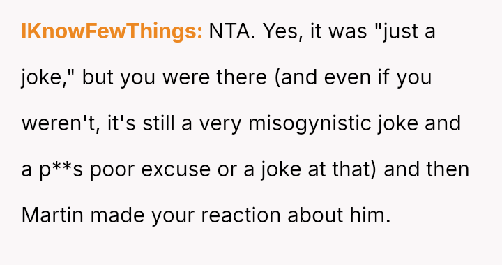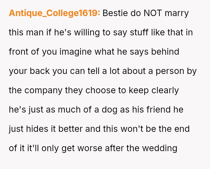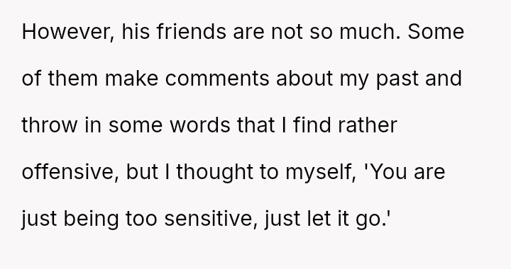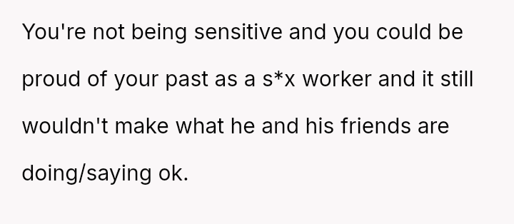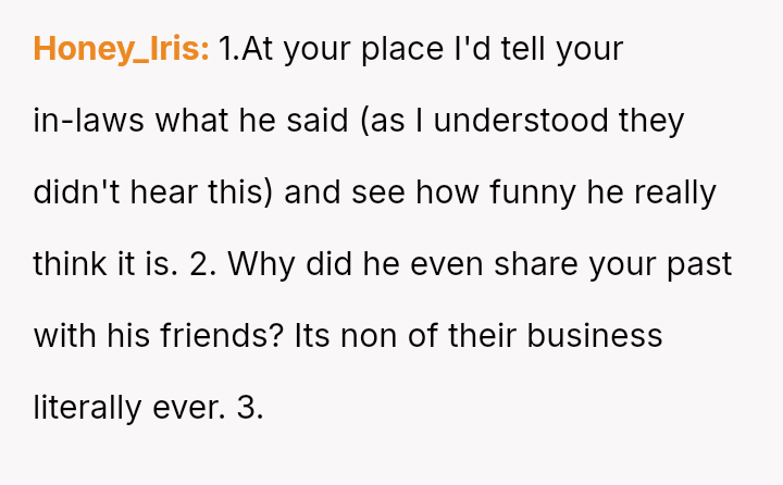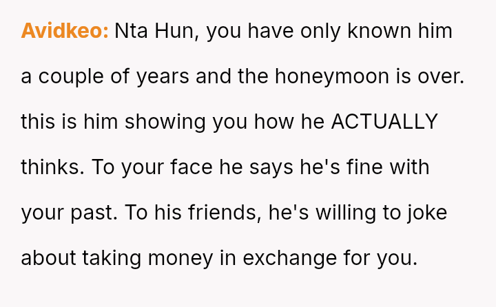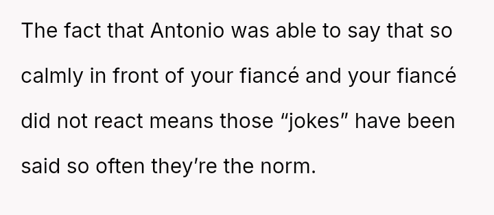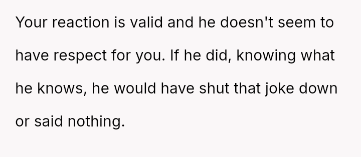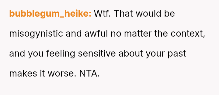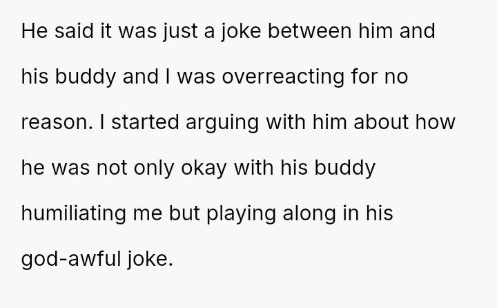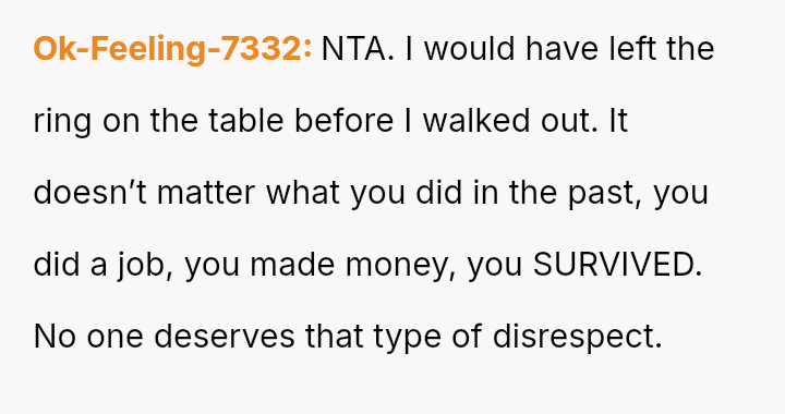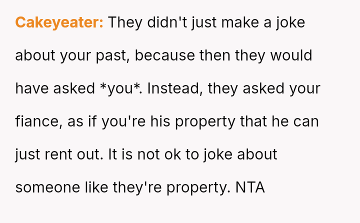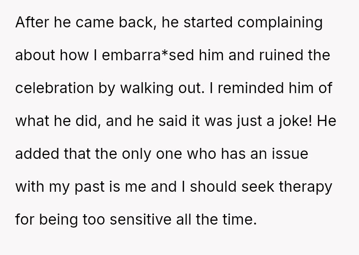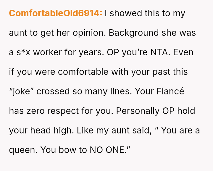 The original poster (OP) faced a deeply hurtful situation where her fiancé publicly validated a derogatory joke about her past, turning her moment of celebration into one of intense humiliation.