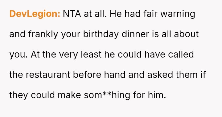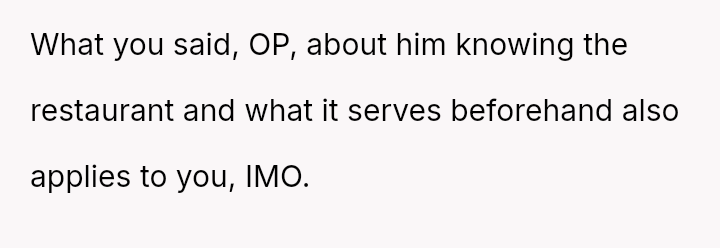 Was the OP justified in choosing a restaurant based on her preferences without ensuring a suitable fallback meal for her guest with known restrictions, or should she have prioritized accommodating the guest's needs to avoid disrupting her own celebration? Where does the responsibility lie for managing d*etary accommodations during a special occasion?