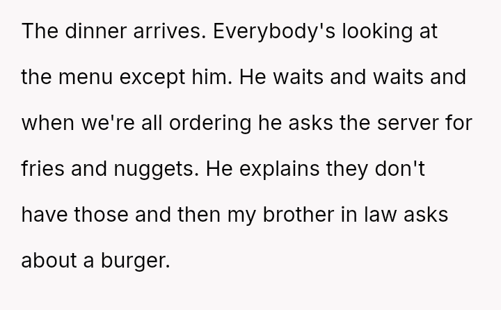 Her brother-in-law’s rigid insistence on ordering only chicken nuggets and fries—a demand ignored by the restaurant’s menu—cast a shadow over what should have been a simple dinner, revealing deep-seated tensions beneath the surface.