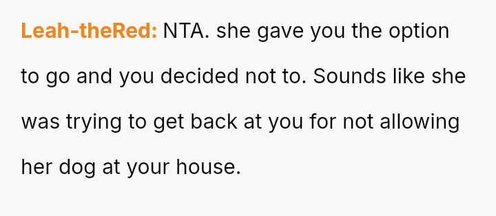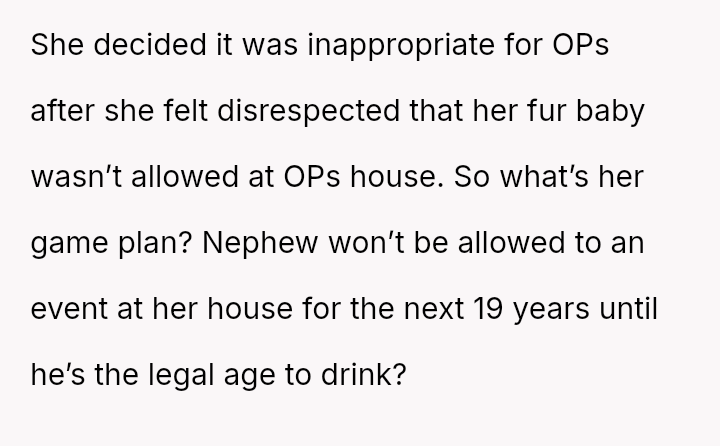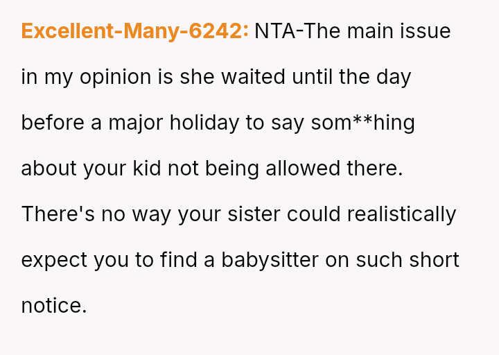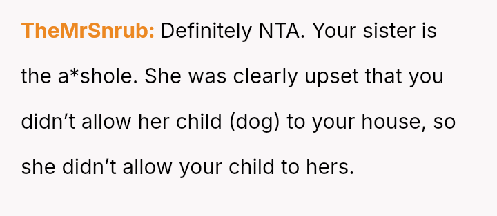 The core question is whether the OP was justified in prioritizing their es**blished comfort levels (no dogs) and subsequent attendance decision based on the sister's exclusion of their child, or if the sister's hosting rights and the prior gift-giving created an obligation to attend despite the new restrictions.