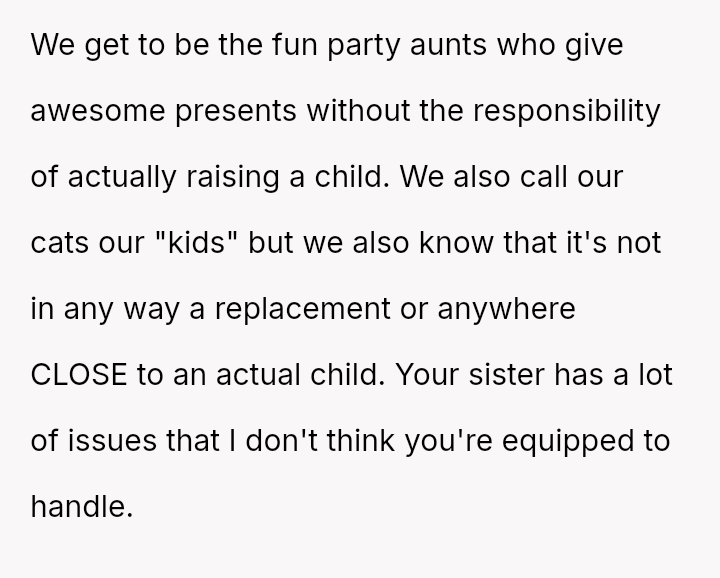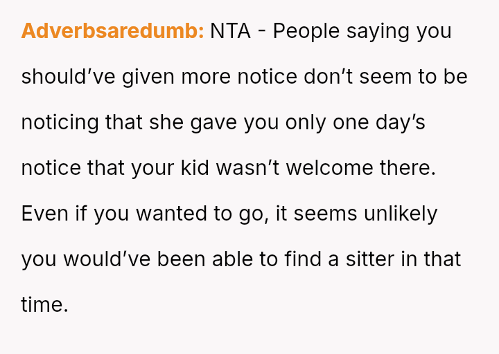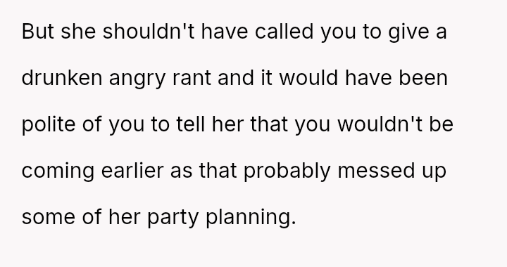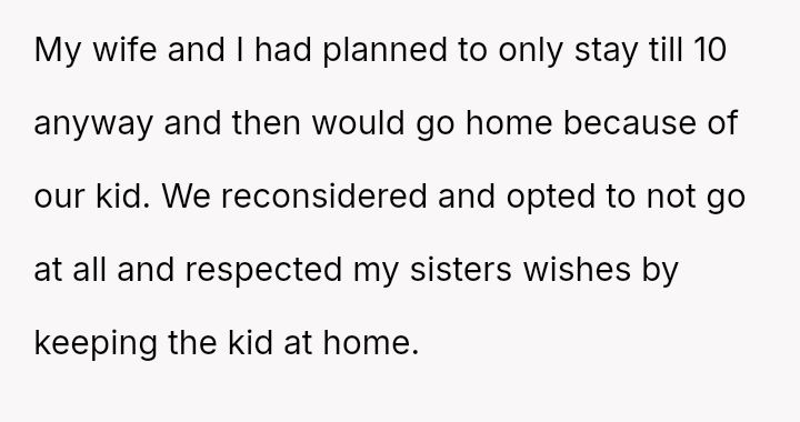 This decision led to significant emotional backlash from the sister, who felt slighted by the OP's absence and priorities.