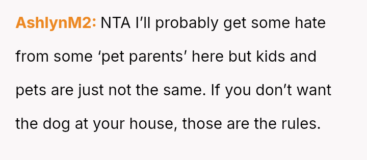 The original poster (OP) faced a conflict stemming from differing family expectations regarding children and pets during holiday gatherings.