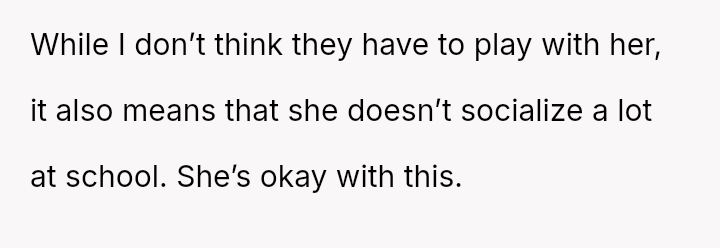 Though she often plays alone at recess, she is not broken — she is resilient, carving out her own space in a world that hasn’t quite learned to embrace her yet.