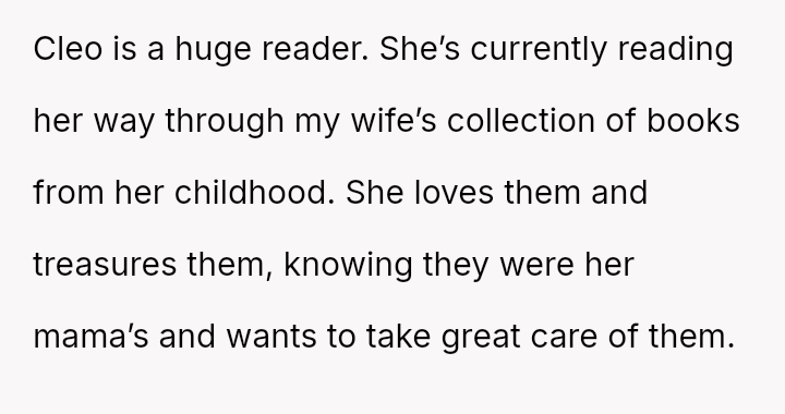 Her parents watch with a mixture of pride and heartache as Cleo retreats into the comforting world of books, finding solace in stories that connect her to her mother’s childhood.