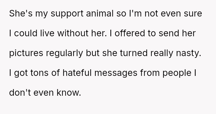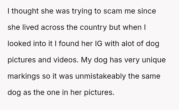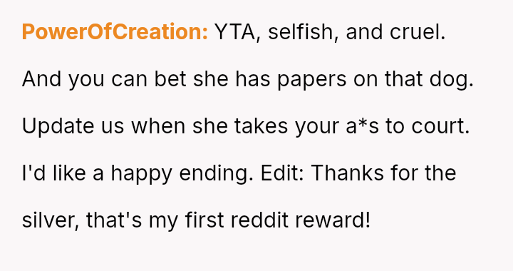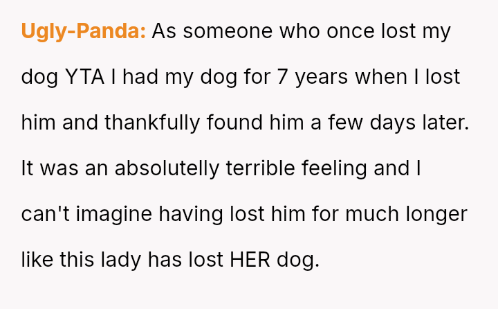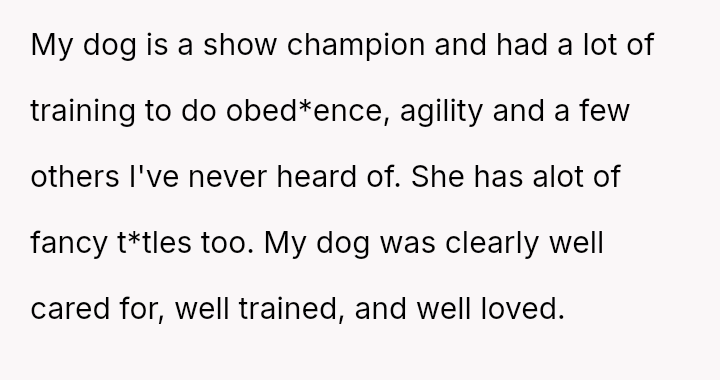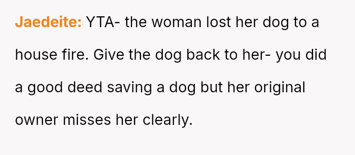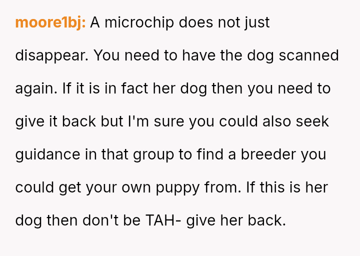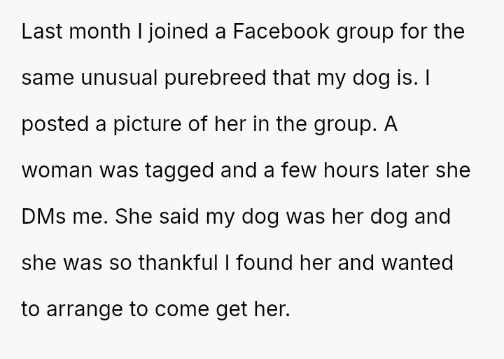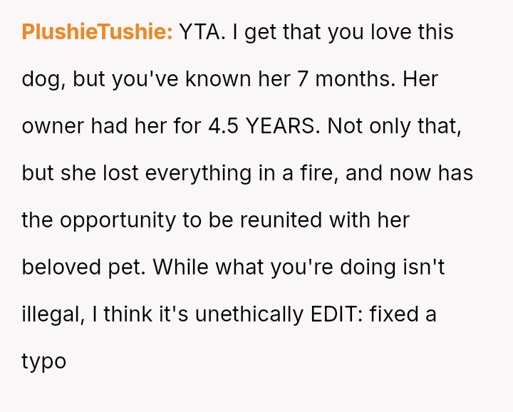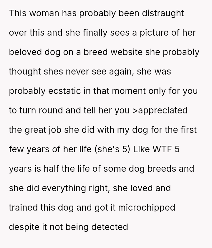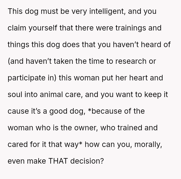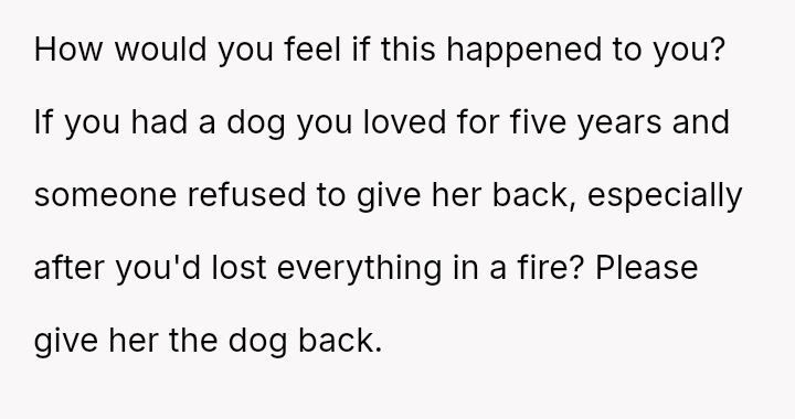 Given that the OP is legally in the clear but morally conflicted over the original owner's clear distress and prior ownership, is it justifiable to prioritize personal mental health and es**blished bond over returning a beloved, high-value show dog to its original, grieving owner?