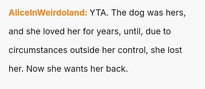 The original poster (OP) is facing a significant emotional dilemma, caught between their legal right to the dog they adopted and the deep emotional bond they have formed, especially considering the dog serves as a crucial support animal for their mental health.
