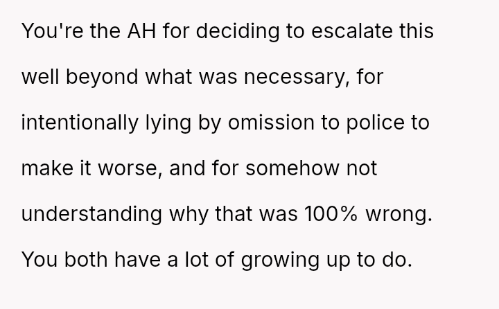 When a personal boundary is deliberately crossed, is reporting the unauthorized use of property to the authorities a justified act of self-protection, or does the existing spousal relationship mandate a less severe, non-legal response, even when a prior agreement was broken?