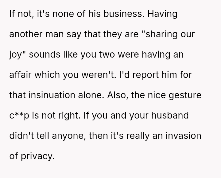 Was the OP justified in her strong negative reaction and her intent to report the privacy breach, or did her coworker's public announcement const*tute an overreaction to what others perceived as sharing happy news?