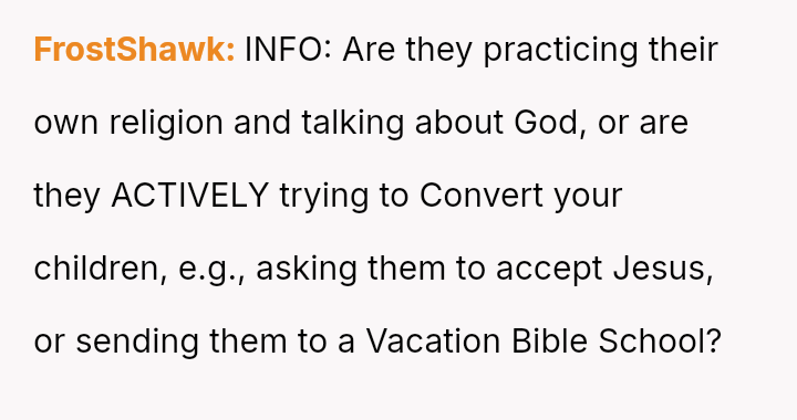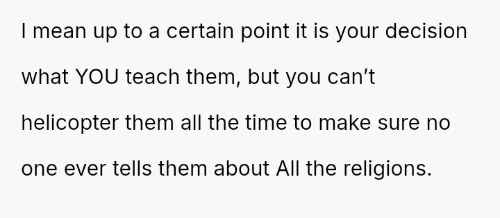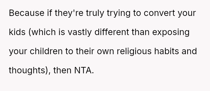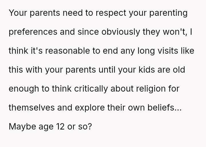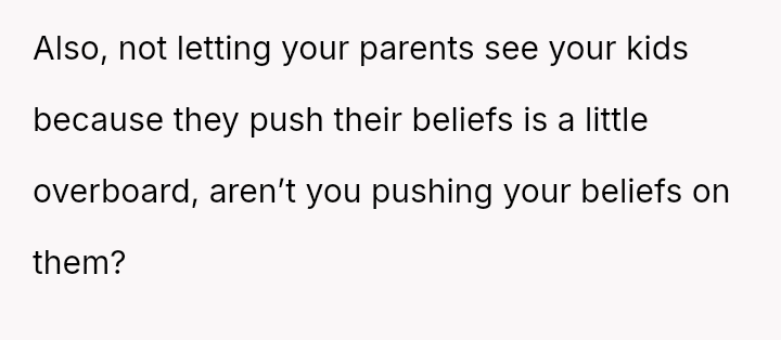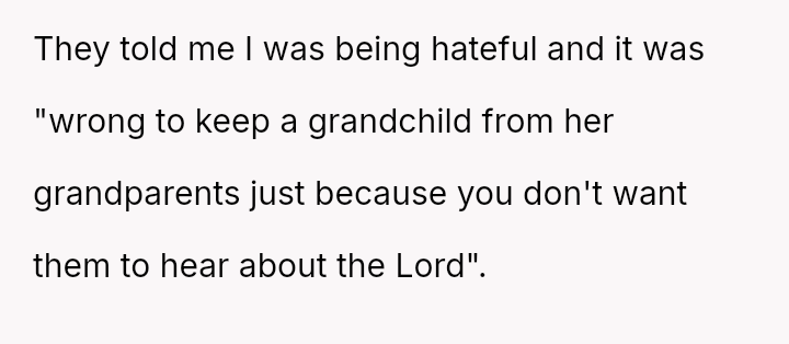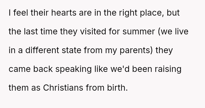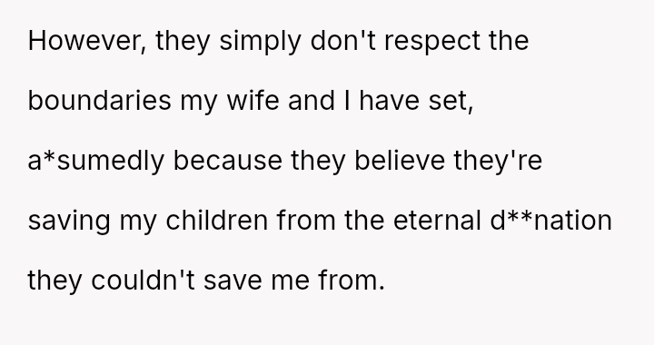 The OP attempted to maintain parental authority by setting clear boundaries about religious instruction, but the grandparents repeatedly disregarded these rules, motivated by a desire to save the children from perceived eternal harm.