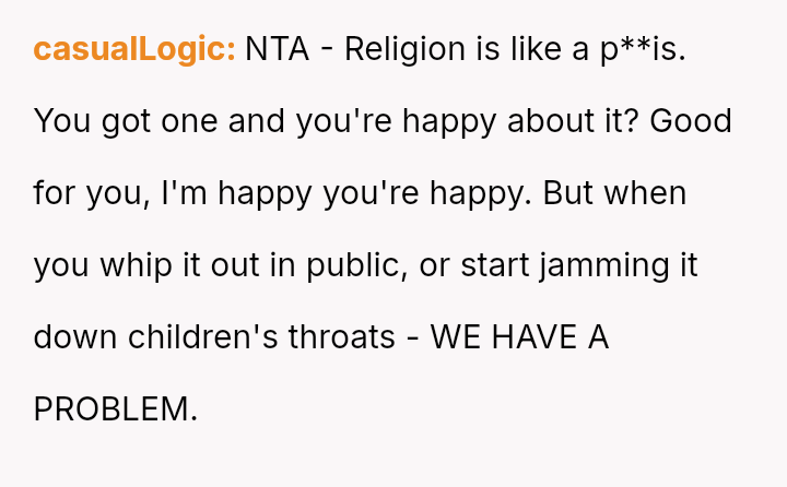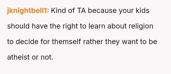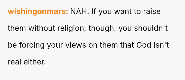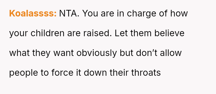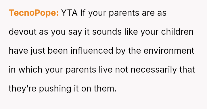 The original poster (OP) is experiencing significant conflict because their deeply held values regarding their children's religious upbringing are being actively undermined by their devout Christian parents.