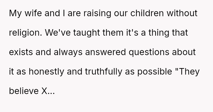 In a home where love and honesty form the foundation, a couple is determined to raise their children free from the constraints of religion, allowing them to explore the world with open minds and hearts.