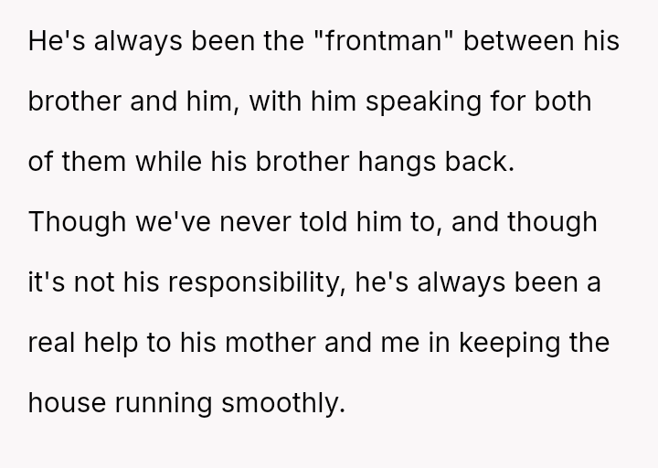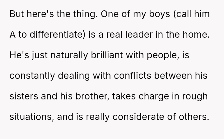 A is more than just a dutiful child; he is the steady anchor amid sibling storms, the peacemaker who steps up when tensions rise, and the compa*sionate heart that puts others before himself.