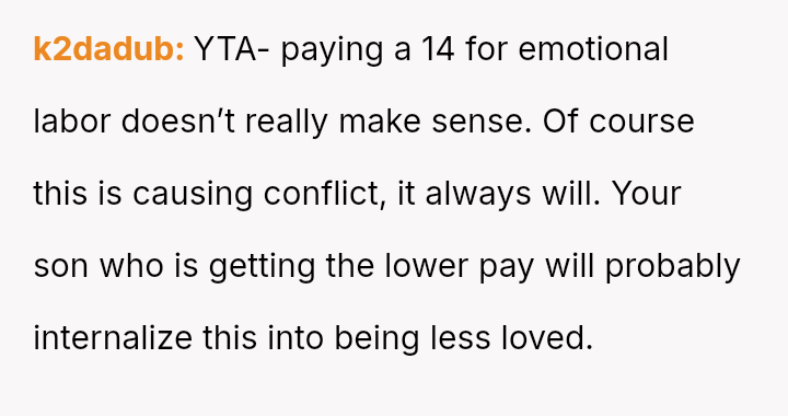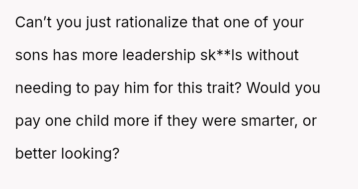 Should parents compensate children differently for una*signed emotional labor and informal leadership roles when baseline ch**es are equal, or does this practice undermine the principle of fair, equal treatment among siblings performing standardized work?