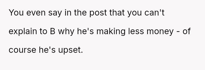 The father is facing conflict because his son, B, feels his allowance is unfairly lower than his twin brother A's, despite both performing the same listed ch**es.
