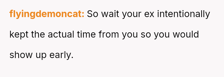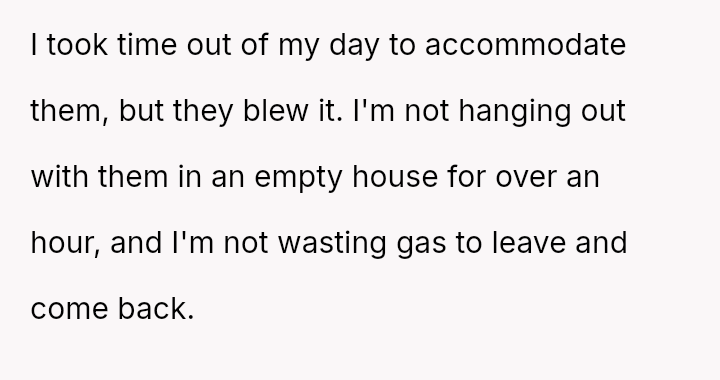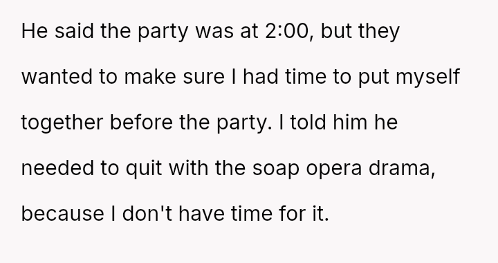 The central conflict arose when the OP initially agreed to accommodate the request, only to be misled about the party time, leading the OP to feel manipulated and choose to leave the empty venue rather than wait.