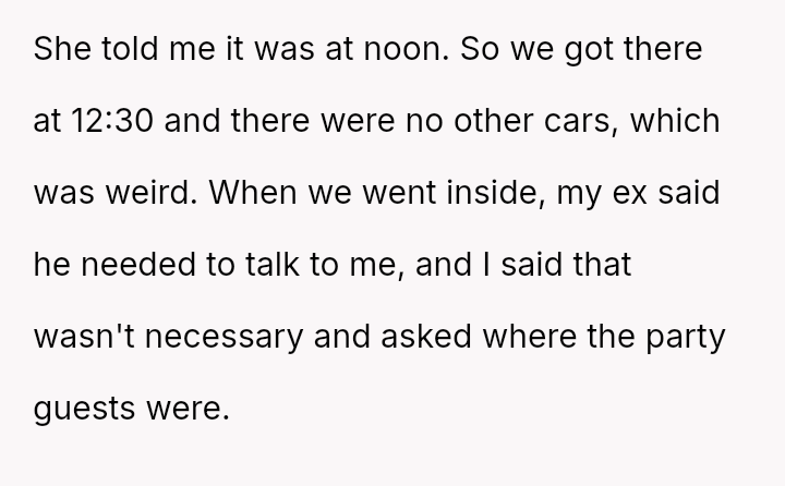 Was the OP justified in immediately leaving the misrepresented event to protect their own time and boundaries, or should they have remained to avoid upsetting the birthday child and placate the former spouse's family?