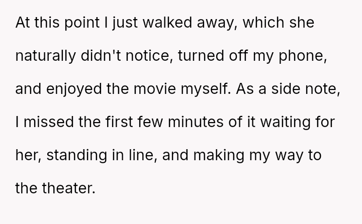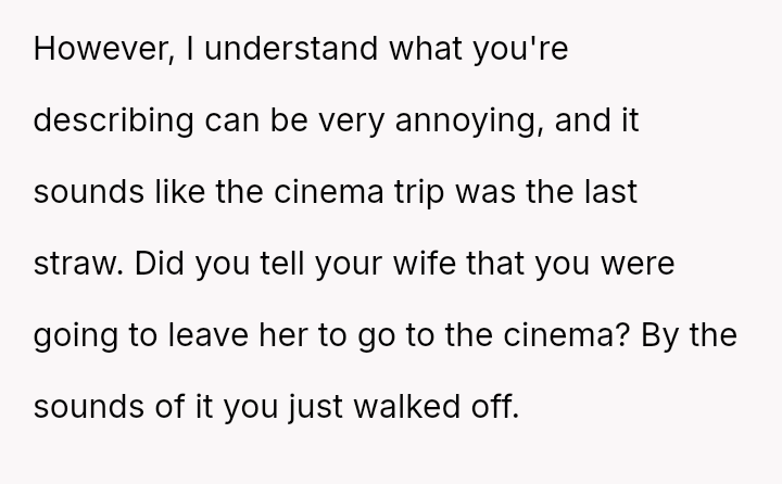 The husband felt compelled to take a drastic action by abandoning his wife at the movie theater because her consistent tardiness caused him significant anxiety and felt like a dismissal of his needs.