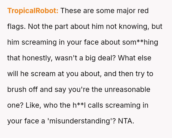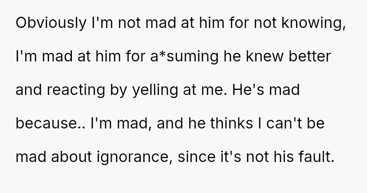 The central tension lies between the OP's expectation of empathy and an apology for the yelling versus the boyfriend's refusal to apologize, framing his outburst as a simple misunderstanding due to his lack of knowledge.