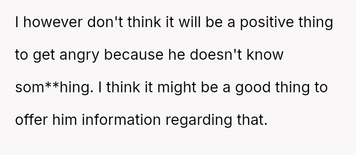 Should the boyfriend apologize for his aggressive reaction and yelling, even if he claims ignorance about men******ion, or is the OP being unreasonable by demanding an apology for behavior rooted in what he perceives as an honest, albeit uninformed, misunderstanding?
