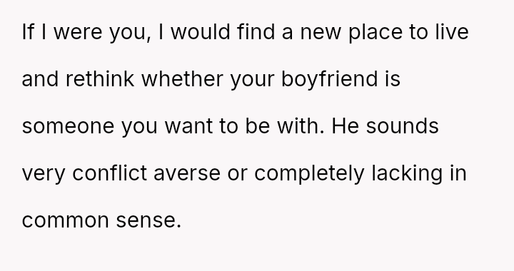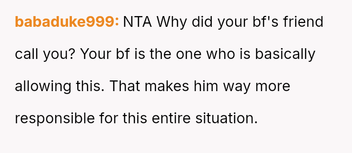 This conflict pits the OP's strong sense of responsibility and past trauma against the couple's decision-making and the boyfriend's desire to avoid domestic tension.