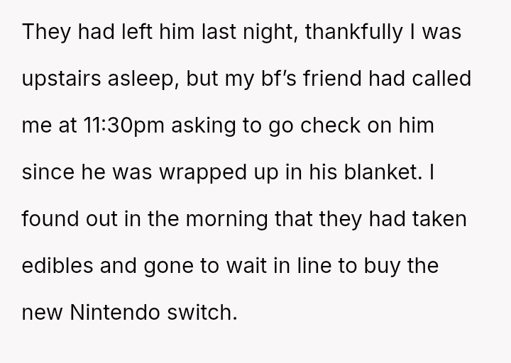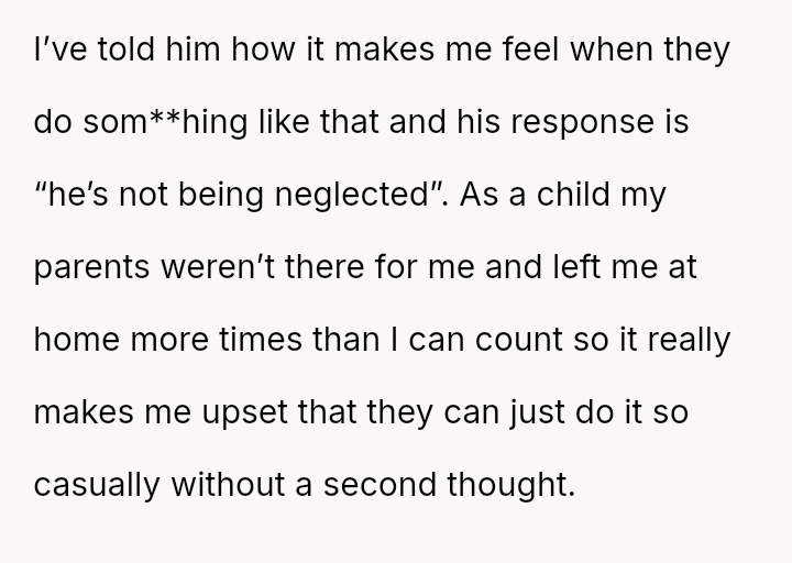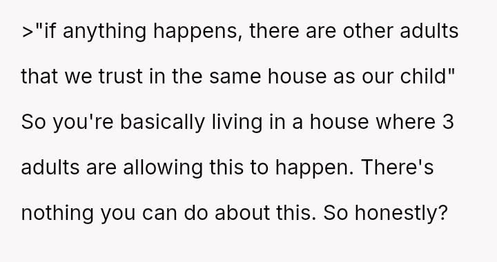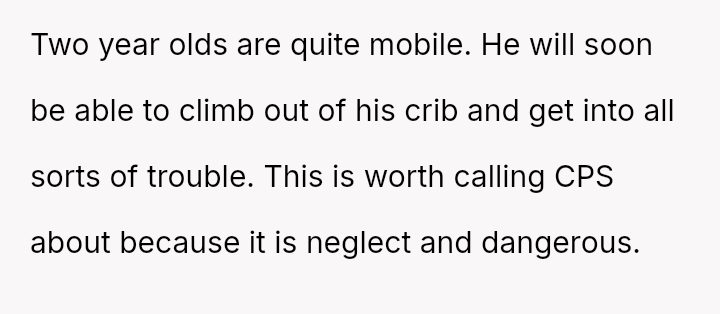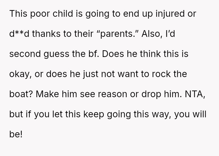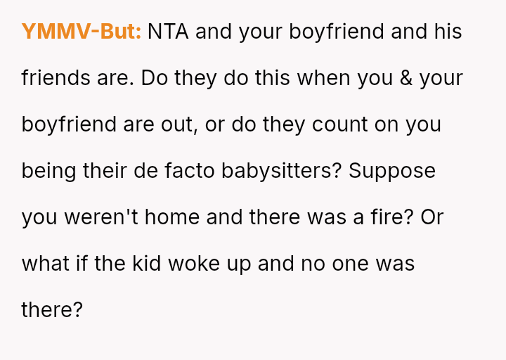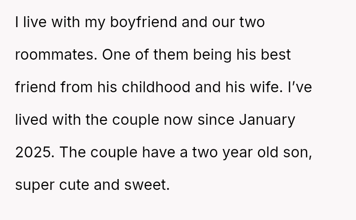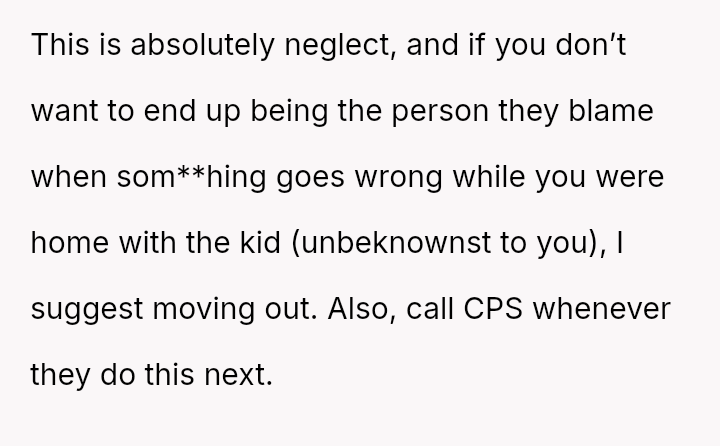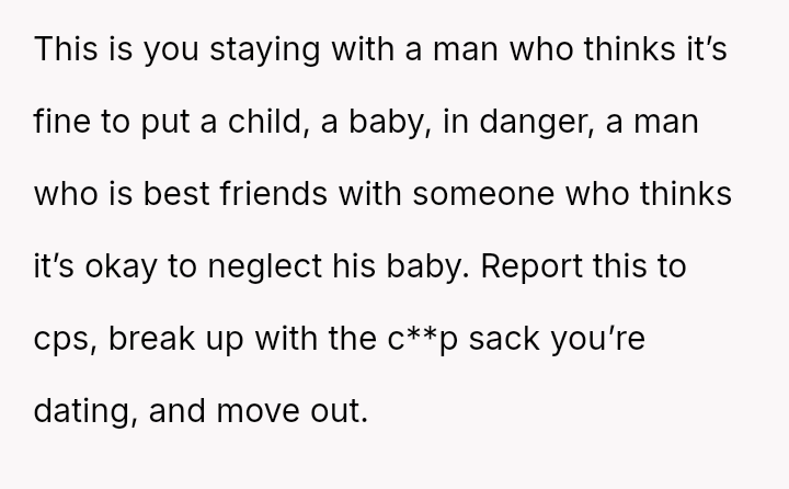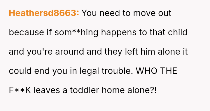 The original poster is deeply disturbed by their roommates leaving their two-year-old son home alone while sleeping so they can go out to eat, a situation compounded by the boyfriend's refusal to support the OP's concerns.
