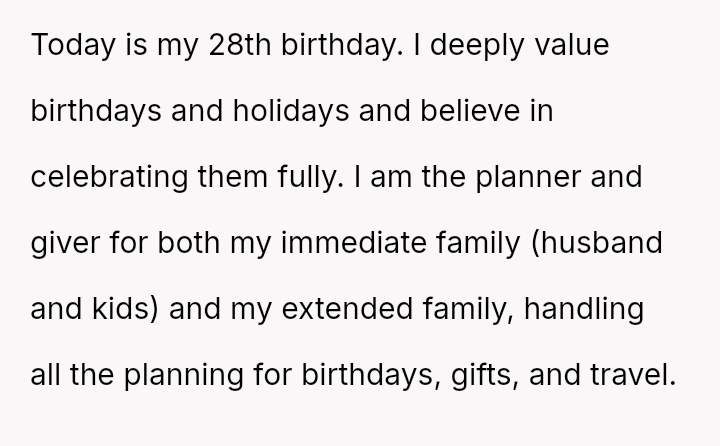 The original poster (OP) feels deeply unappreciated and exhausted after consistently planning and executing celebrations for her entire family while managing significant caregiving duties and her own illness.