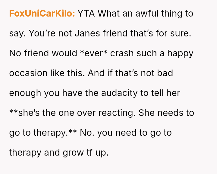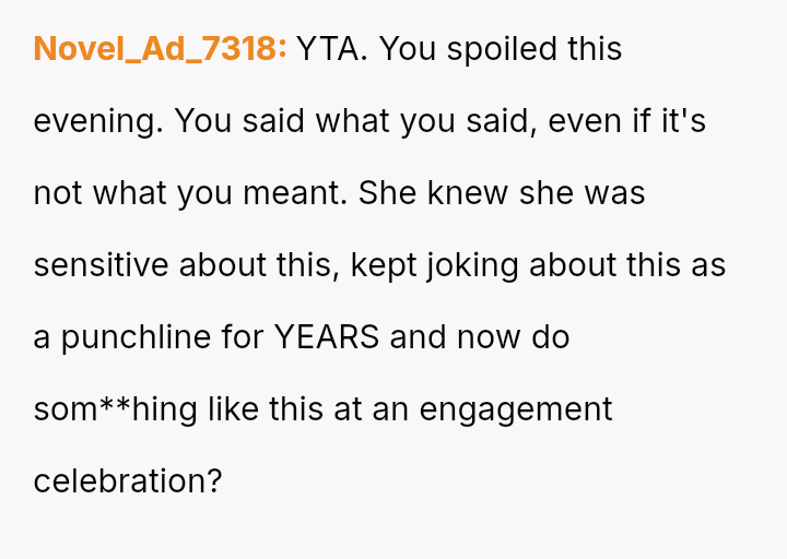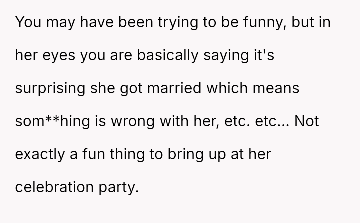 The original poster (OP) is facing a serious rift with a close friend following a seemingly offhand remark made during a celebration.