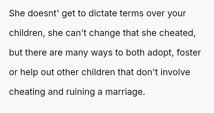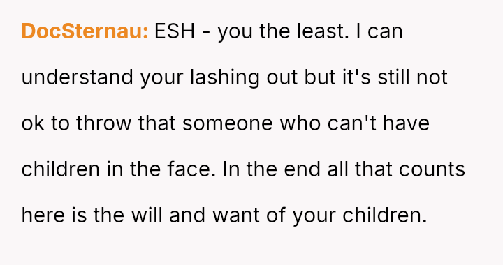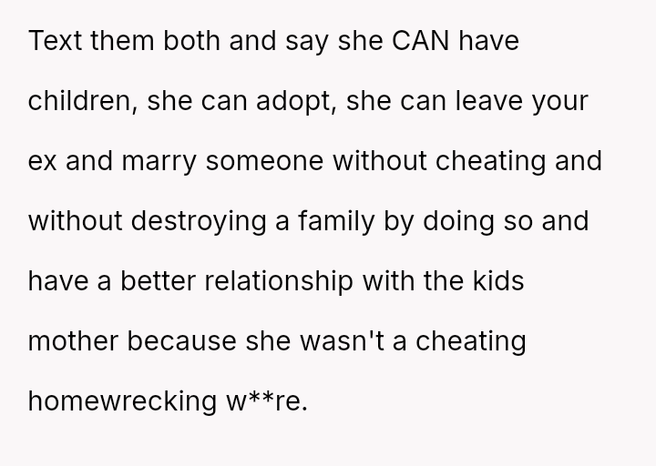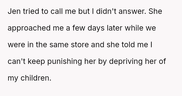 The ex and Jen, who are now together, allegedly told the OP that Jen is sterile and cannot have children, seemingly to encourage the OP to allow Jen to bond more closely with the children.