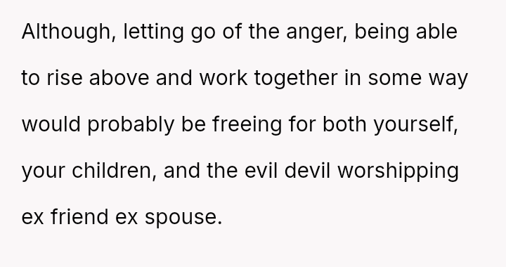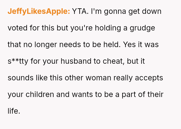 A woman (40F), referred to as OP, is dealing with the aftermath of her divorce from her ex-husband (44M), which occurred after he cheated on her with a woman named Jen (42F).